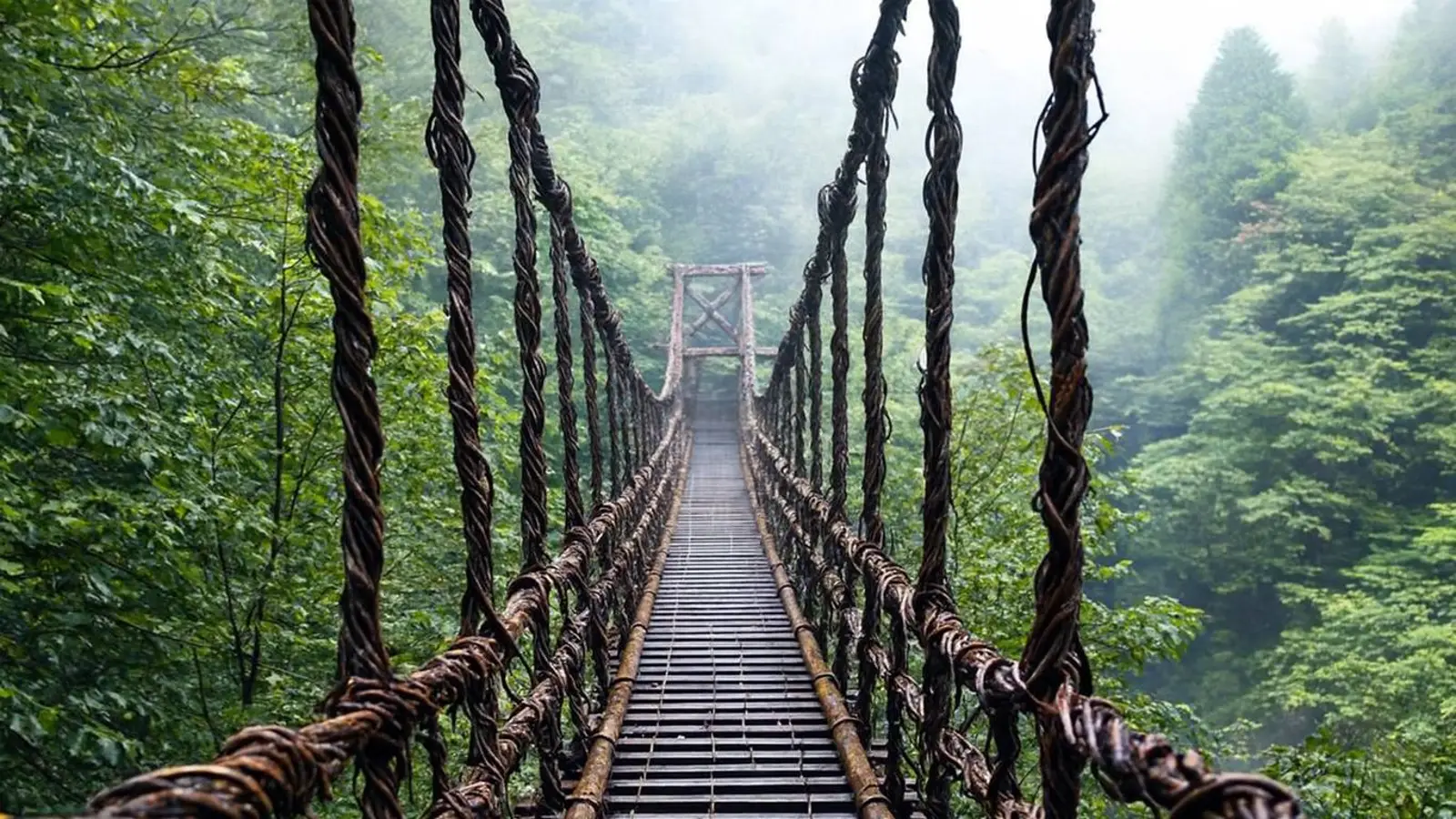 Nel centro dello Shikoku, incastonata nei pendii della valle di Iya, resiste un’altra tradizione insolita: ponti sospesi intrecciati con liane selvatiche.