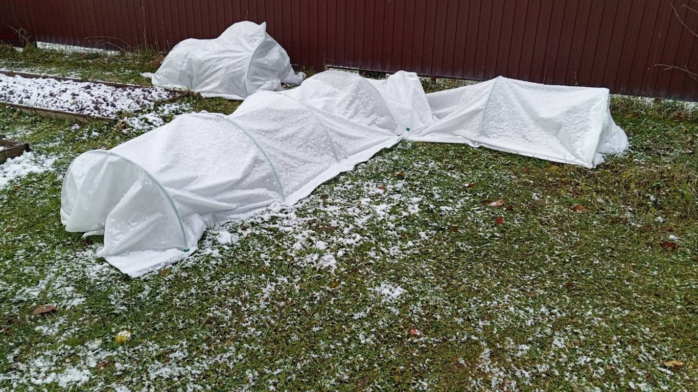 Для больших грядок садоводы часто выбирают агроволокно. Материал с плотностью 50–60 г/м² укладывается на дуги над кустами и создаёт прочный укрывной слой. Такой способ удобен и позволяет клубнике спокойно перенести холодный сезон.
