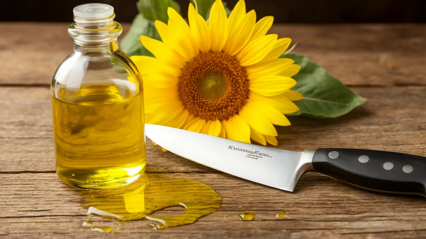 Лёгким слоем смажьте лезвие подсолнечным маслом.