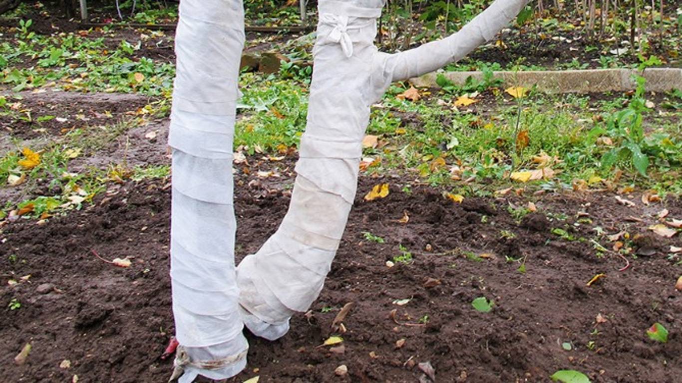 Кора у молодых деревьев легко повреждается от перепадов температур. Чтобы избежать подмерзания, ствол можно обернуть мешковиной, спанбондом или специальной садовой сеткой.