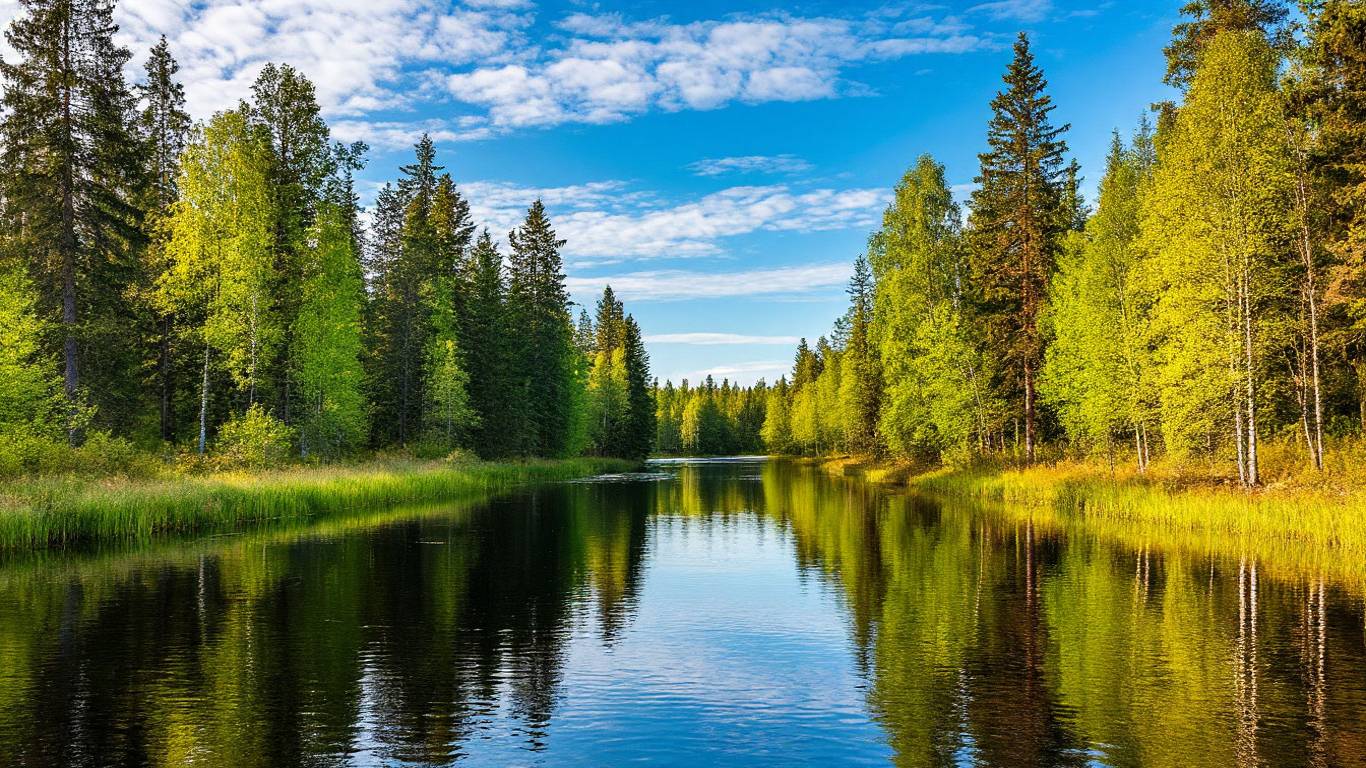 Зимние леса Карелии превращаются в настоящую сказку. Снежный покров искрится на солнце, а морозная тишина кажется почти осязаемой. Озёра покрыты льдом, а утренний лес наполнен только звуками ветра и редких птиц.