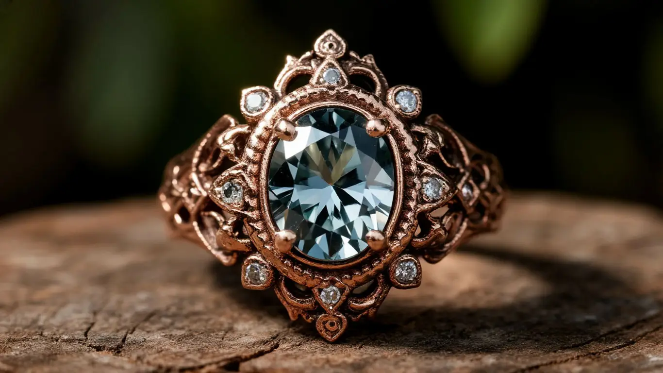 Материал кольца — бронза с примесью золота. Окисление прекратилось менее чем через сто лет, что позволило кольцу сохраниться почти в первозданном виде.