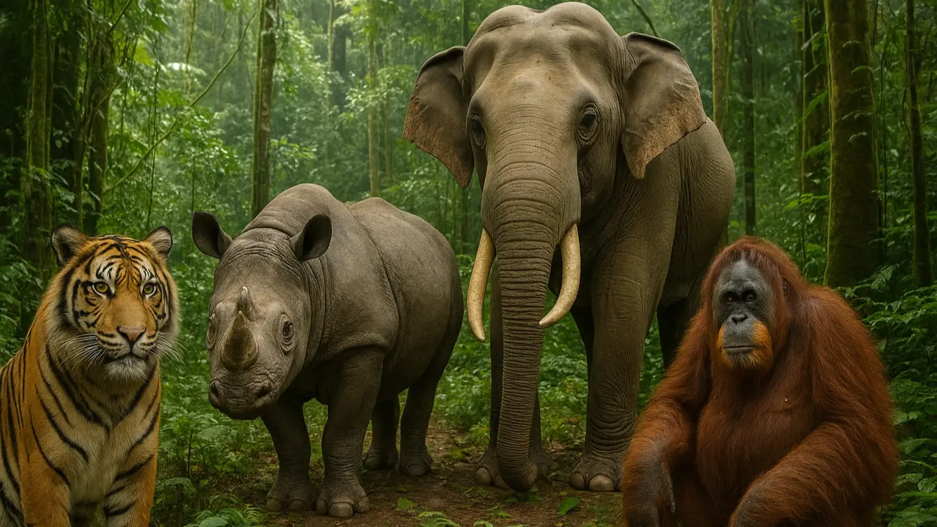 На Земле немало удивительных уголков, но один из них выделяется особенно. Портал «ТУРИСТАС» вспомнил о Суматре — крупном индонезийском острове, который хранит редкое природное явление. Здесь, в одном лесном массиве, бок о бок обитают четыре совершенно разных и крайне редких животных: тигр, носорог, слон и орангутан. Все они — дикие, свободные и полностью зависящие от ритмов джунглей.