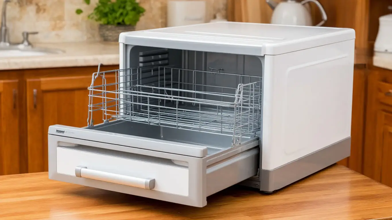Настольные посудомойки. Размер около одного кубометра, вместимость 6–8 комплектов. Идеальны для тех, у кого кухня уже занята другими приборами. Стоят недорого и не требуют встраивания.