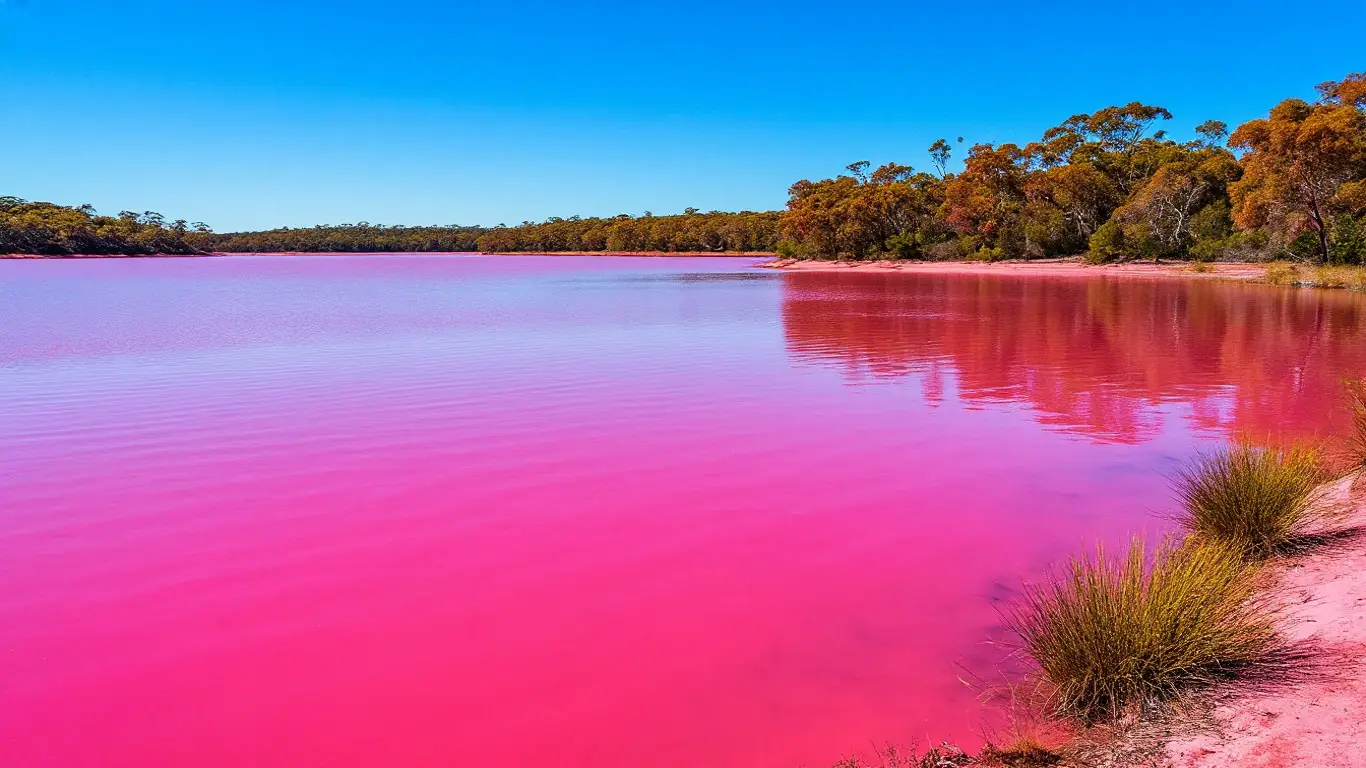 - Озеро Хиллер, Австралия – ярко-розовое, словно клубничное молоко.