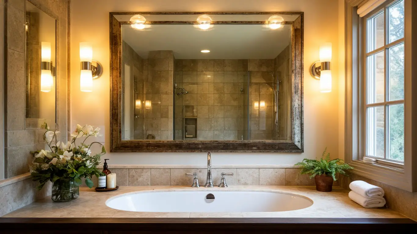 - Зеркала с встроенной подсветкой помогут избежать теней на лице.