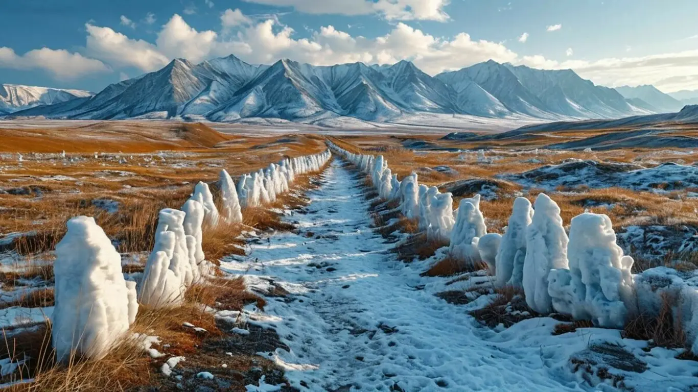 В северной Сибири, где зима длится большую часть года, раскинулась Якутия. Этот регион известен своей вечной мерзлотой, которая покрывает более 65% территории и хранит секреты прошлых эпох. Здесь природа создала уникальные ландшафты: подземные льды формируют причудливый рельеф, а летом, несмотря на жару, тысячелетние льды почти не тают.