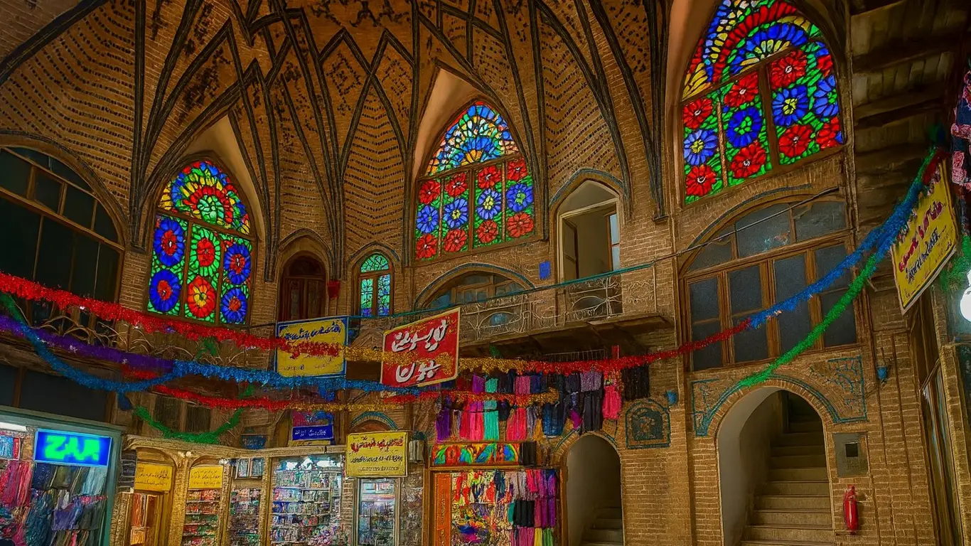 Гранд-базар — наглядный пример классической иранской архитектуры. Купола, арки, световые отверстия в потолках, прохладные тени узких проходов — всё это создано из кирпича и камня без излишнего декора, но с заметным следом времени.