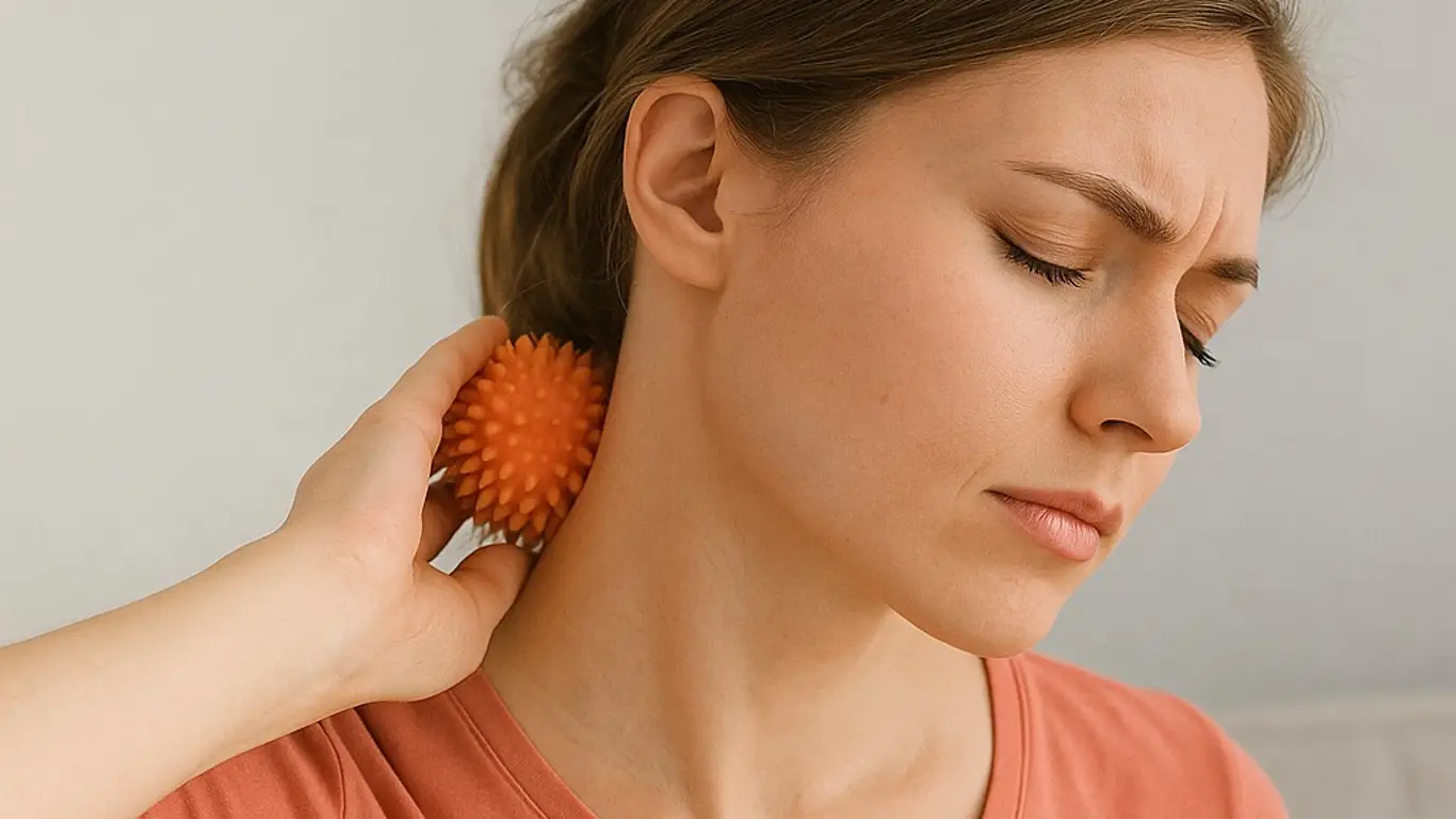 Дополнительный эффект даёт массаж с помощью небольшого мячика. Его прикладывают к точкам по бокам шеи и осторожно прокатывают. Нажим должен оставаться мягким, но ощутимым. Через минуту-две напряжение обычно ослабевает.