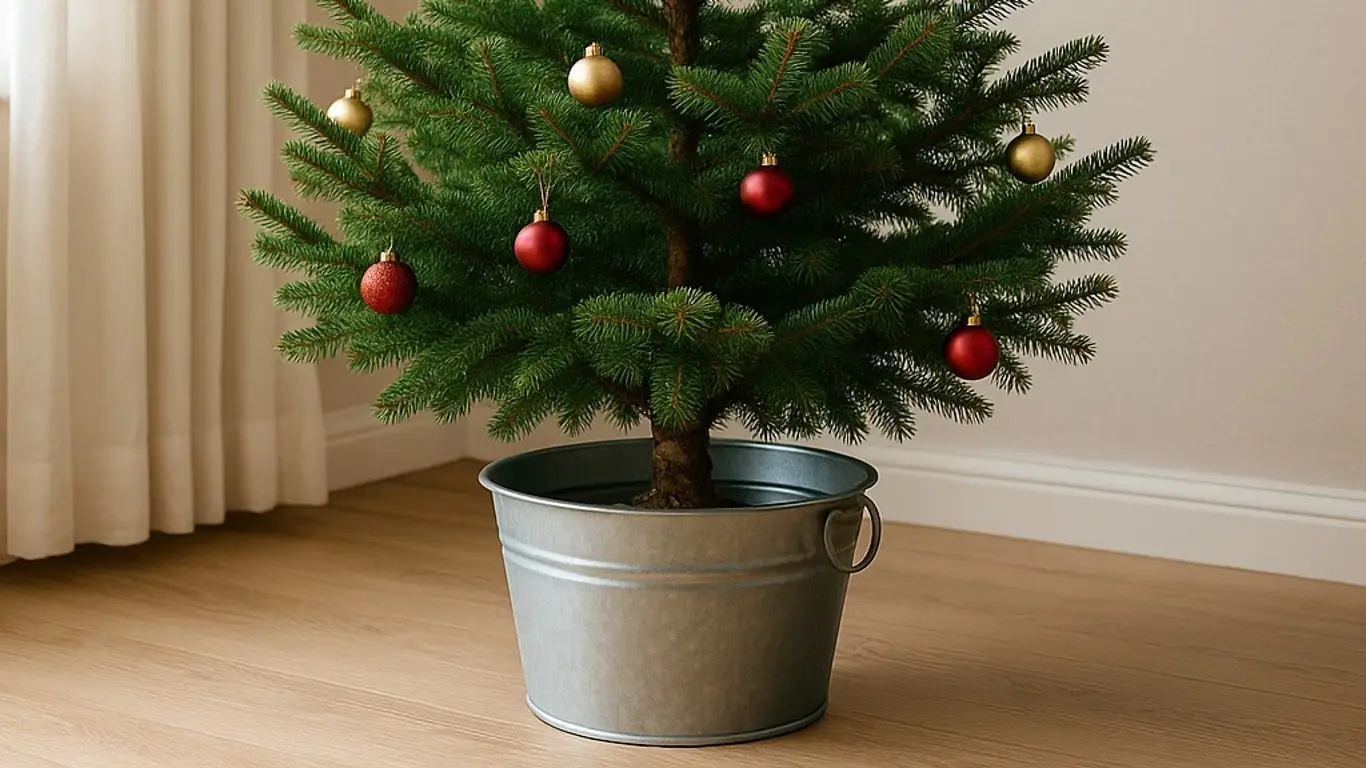 Чтобы дерево действительно стояло долго, важно использовать правильную подставку. Она должна вмещать минимум 1 литр воды на каждые 2,5 см диаметра ствола.