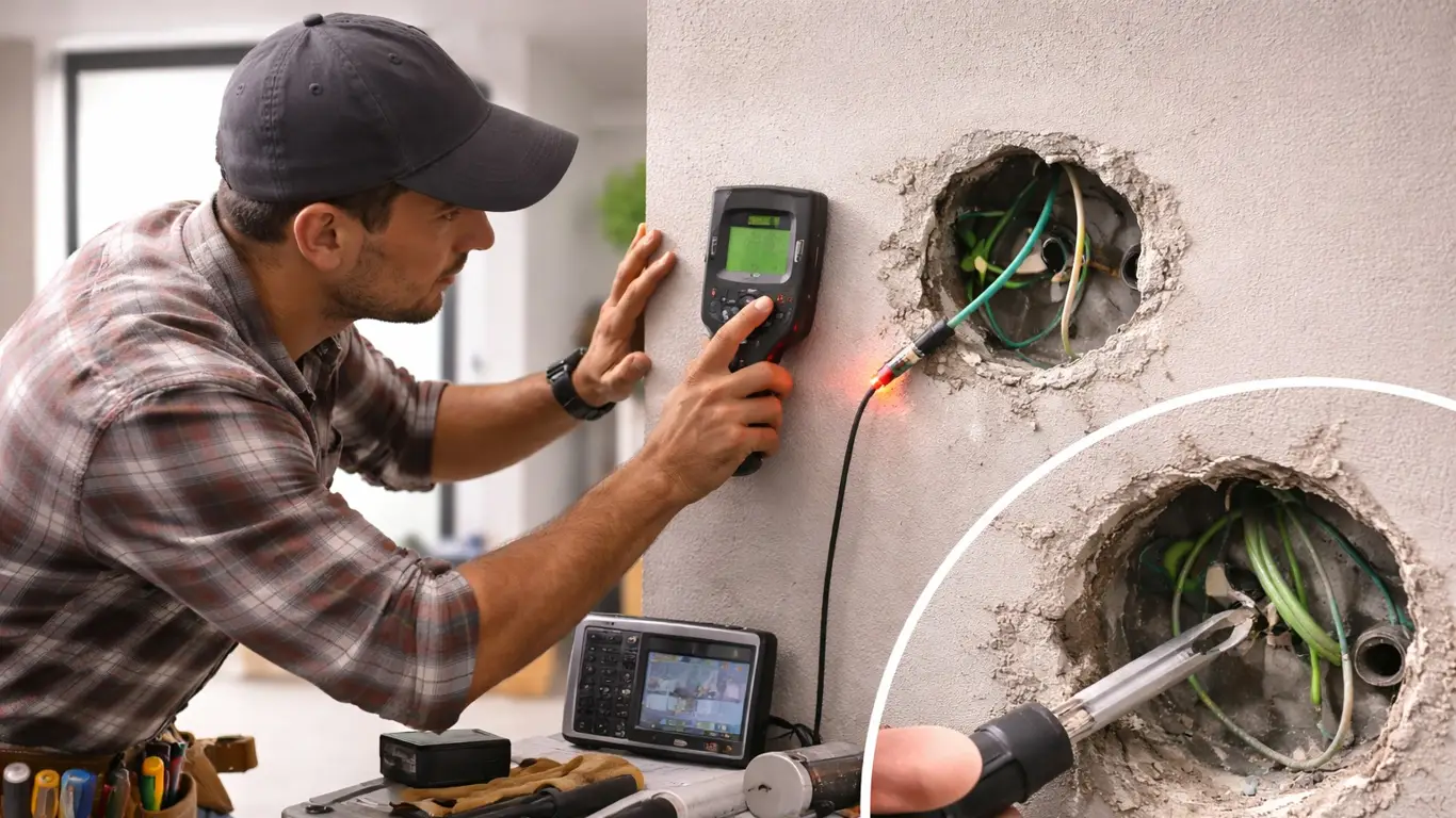 Современные детекторы скрытой проводки работают с электромагнитными полями и дают более точный результат. Они способны находить не только кабели и распределительные коробки, но и деревянные или пластиковые конструкции. Глубина обнаружения обычно составляет от четырёх до шести сантиметров, что подходит для большинства стен в квартирах.