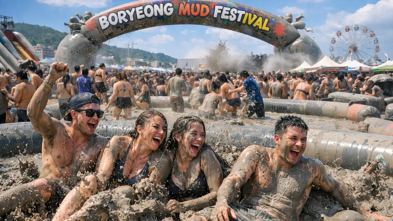 Каждое лето южнокорейский город Порён на несколько недель превращается в огромную площадку для веселья. Здесь проходит Boryeong Mud Festival — Праздник грязи, который давно вышел за рамки локального события и стал магнитом для туристов со всего мира. Люди приезжают не просто посмотреть, а с головой погрузиться в грязь, соревнования и атмосферу беззаботного отдыха. И за этим стоит куда более интересная история, чем кажется сначала.