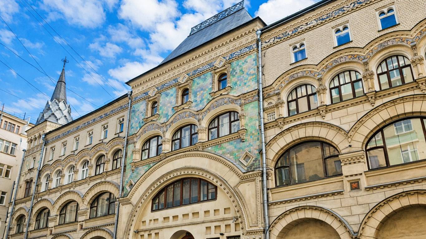 Саввинское подворье часто называют архитектурной «матрёшкой». Снаружи — неорусский стиль с башнями, изразцами и окнами сложных форм. Майоликовые наличники отсылают к ярославским храмам XVII века. Во дворе настроение меняется. Здесь уже барокко: арки, колонны, раковины и сандрики. А интерьеры здания выполнены в духе модерна. Такое сочетание стилей создаёт ощущение, что дом собирали по частям — осознанно и с размахом.