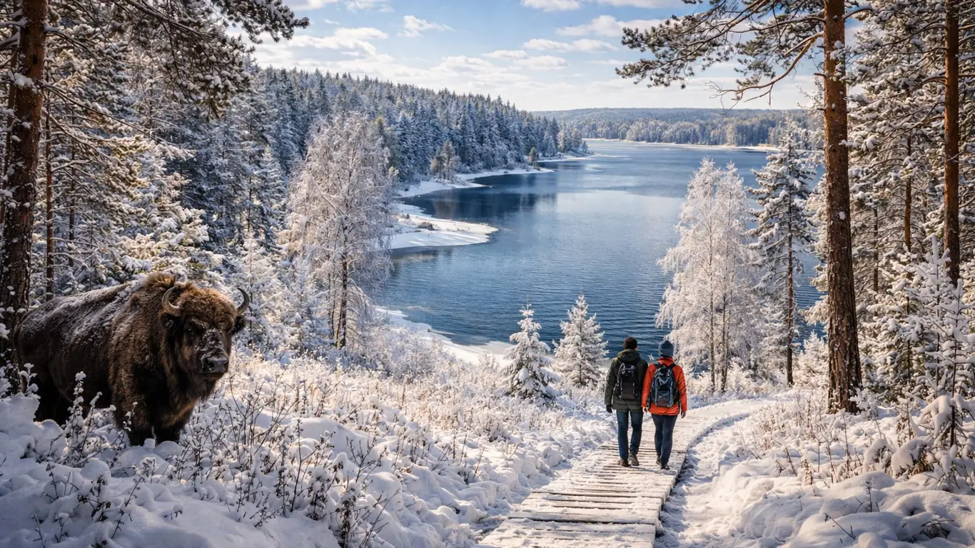 Зима в Поозёрье — не повод ставить путешествие на паузу. В холодное время года парк выглядит особенно спокойно и величественно. Гости гуляют по экологическим тропам, катаются на снегоходах, выбираются на подлёдную рыбалку или останавливаются в усадьбах рядом с озёрами. Для тех, кто предпочитает активный отдых, работают подготовленные горнолыжные трассы.