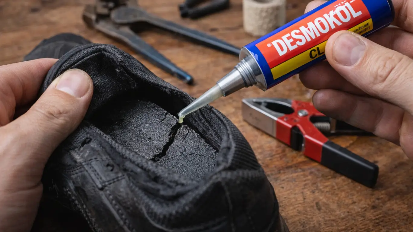 Обычные универсальные клеи для обуви не годятся. Они быстро теряют сцепление и трескаются при сгибе. Для ремонта используют специальные эластичные составы: Desmokol, Moment Marathon, Barge, DoneDeal, LiquiSole.