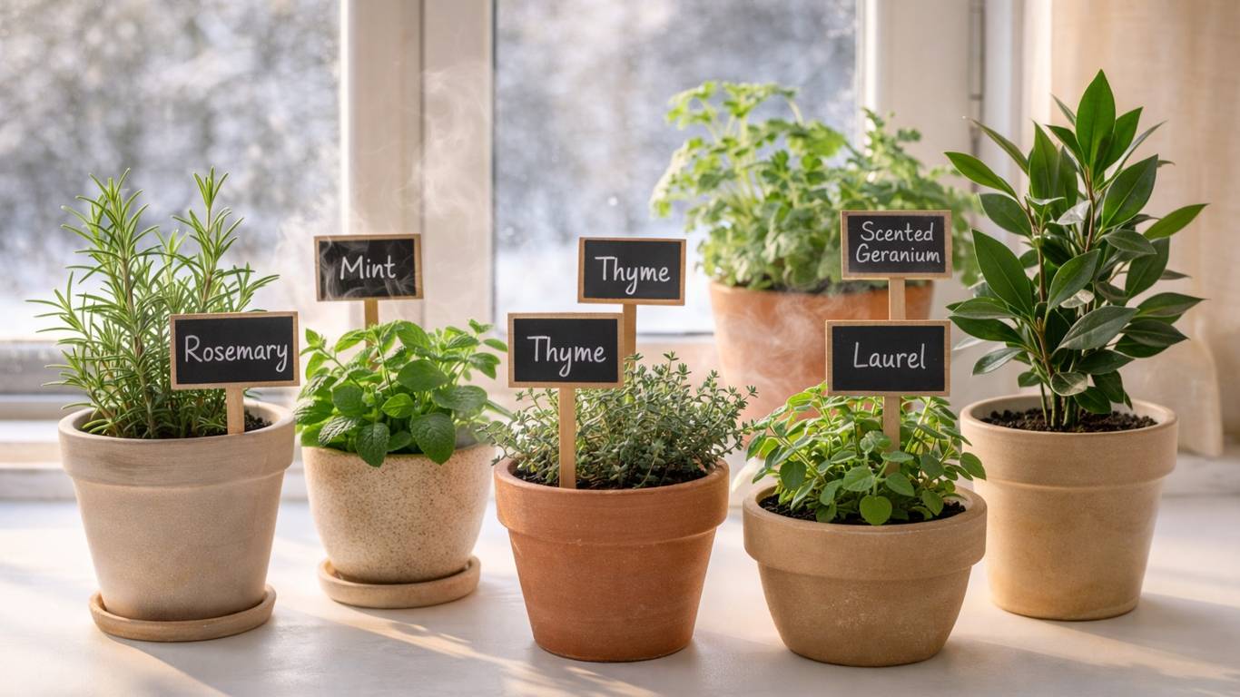 Зима — не повод отказываться от зелени и свежих запахов. Небольшой набор ароматных растений способен заметно изменить атмосферу кухни. Розмарин, тимьян, мята, орегано, лавр и душистая пеларгония не требуют сложного ухода, но дают ощущение тепла и уюта.
