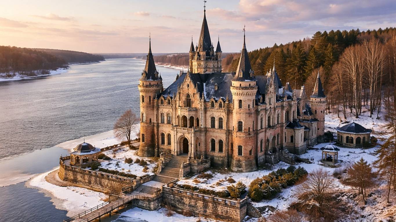 Поселок Красный Профинтерн знают немногие. Здесь нет оживленных трасс и плотного туристического потока. Зато есть замок, который неожиданно вырастает над рекой и выглядит так, будто его перенесли сюда из другой страны.