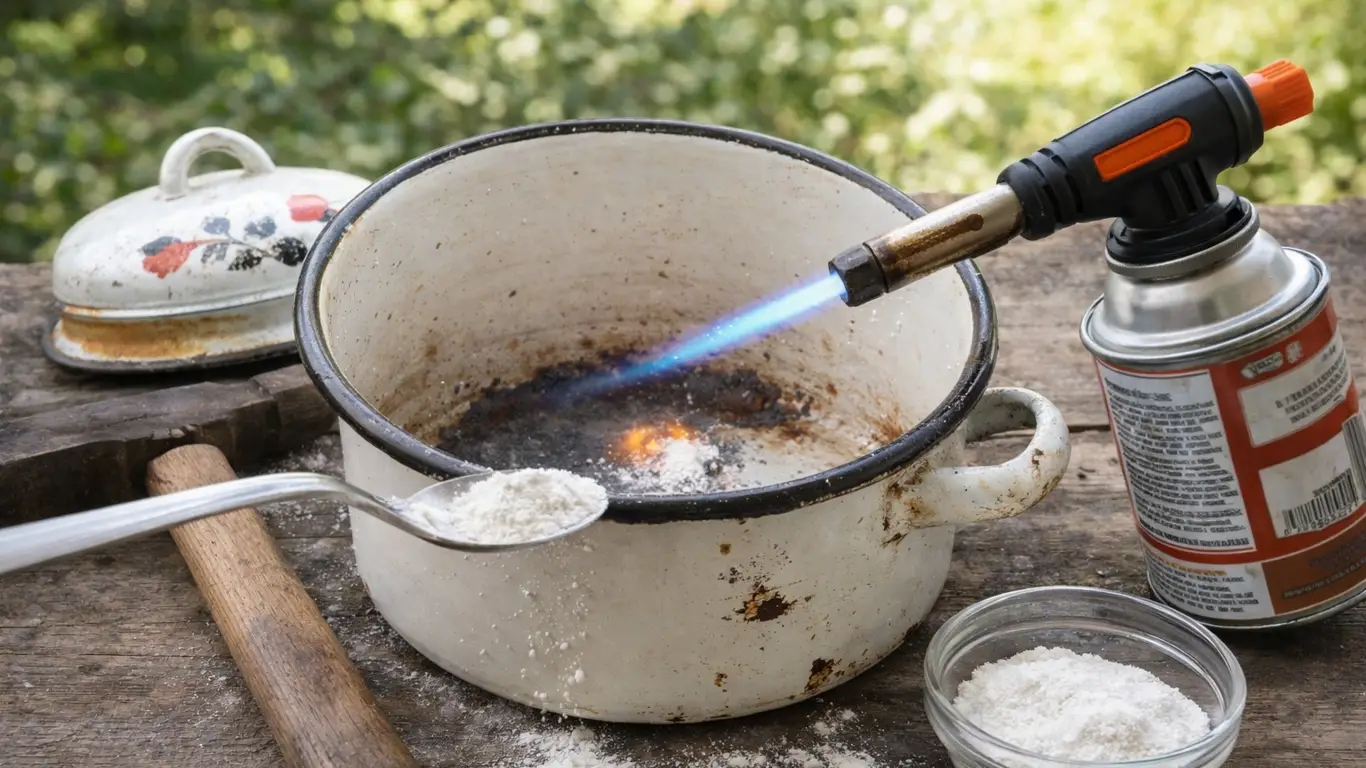 Эмалированная посуда на даче — вещь почти незаменимая. В ней варят, квасят, хранят продукты и используют каждый день. Поэтому появление скола часто становится неприятным сюрпризом. Это не только вопрос внешнего вида: повреждённая эмаль со временем начинает ржаветь, а металл может вступать в контакт с пищей. В запущенных случаях на месте скола образуется отверстие, и кастрюля или ведро выходят из строя.