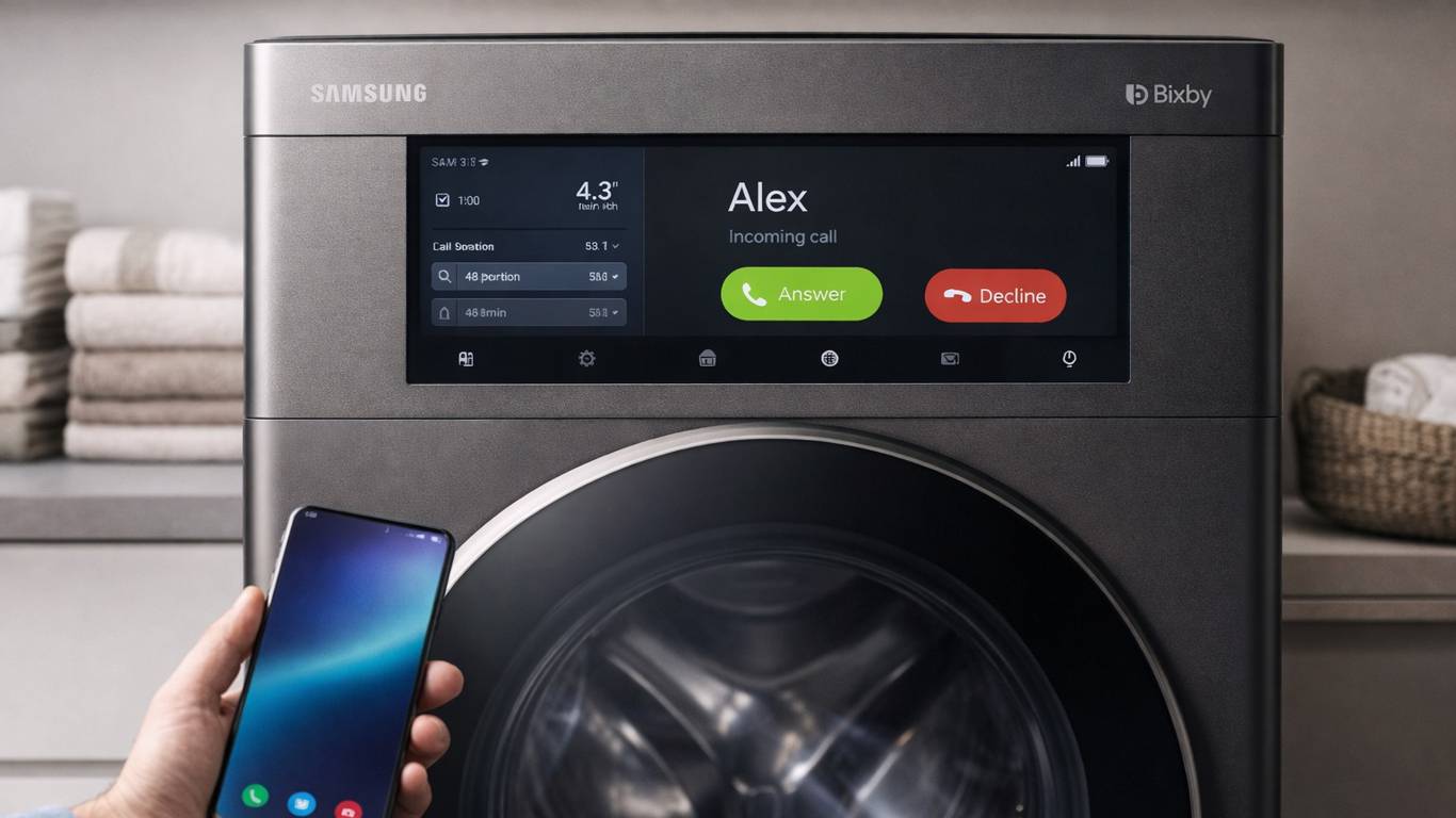 Но главное новшество — возможность принимать входящие звонки со смартфона, подключённого к машине. Если телефон находится поблизости и связан с устройством, вызов можно принять прямо с экрана стиральной машины. Функция выглядит необычно, но вписывается в концепцию «умного дома», где техника становится частью повседневной коммуникации.