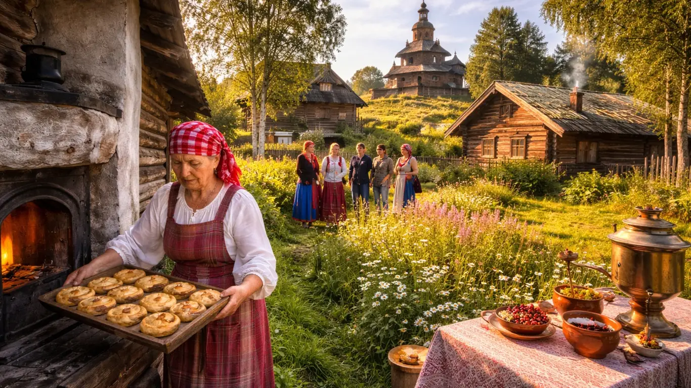 Здесь нет многоэтажек и суеты. Вместо этого — деревянные избы, тихие тропинки и ощущение, что современный мир остался где-то далеко.
