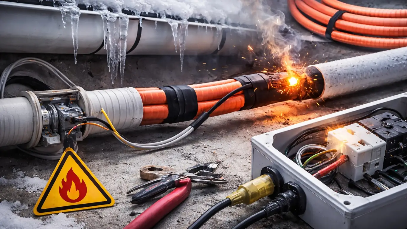 Греющий кабель может стать источником поражения электрическим током. Причины — дефекты изоляции, некачественные соединения, влага или механические повреждения. Опасность возрастает при резких перепадах температуры и воздействии агрессивных сред. Без заземления и дифференциальной защиты эксплуатация такого оборудования становится небезопасной, особенно в жилых помещениях и местах с повышенной влажностью.