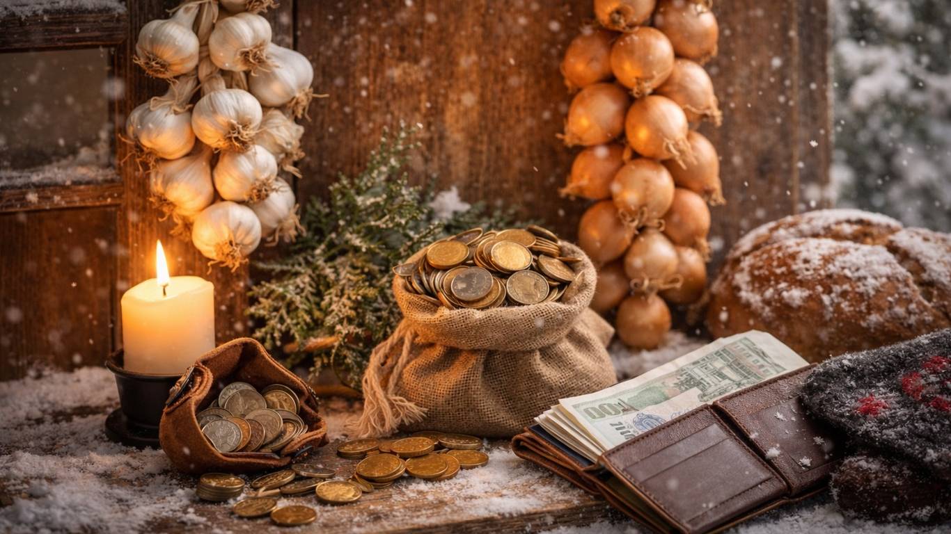 Отдельное место в традициях занимали денежные обряды. Например, существовал совет оставить кошелёк на подоконнике на сутки, чтобы он «притянул достаток». Также упоминали старую примету — положить монетку под подушку. Сегодня это можно воспринимать как символический жест, но суть понятна: в этот день люди старались думать о деньгах осознанно и не принимать решений на автомате.