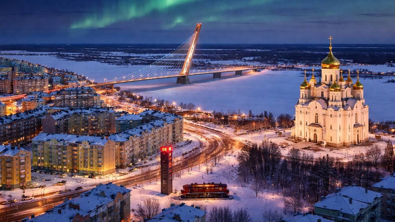 Салехард — столица Ямало-Ненецкого автономного округа и один из самых необычных городов России. Его знают как место, где суровая природа соседствует с современной архитектурой, а рядом с памятником паровозу нет ни одной железнодорожной ветки. Главная особенность Салехарда — он стоит прямо на Северном полярном круге и считается единственным городом в мире, расположенным на этой широте.