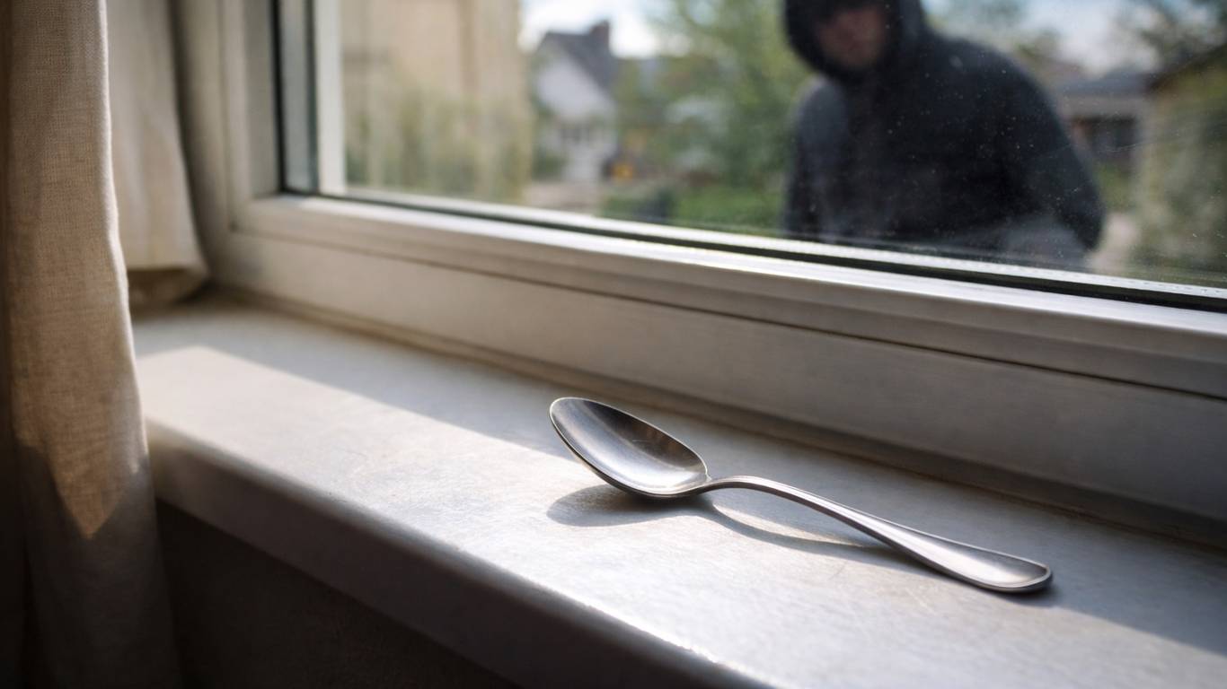 Идея проста. Перед тем как уйти надолго, на подоконник кладут металлическую ложку так, чтобы она была заметна через щель в шторах или сквозь окно. Ложка блестит, ловит свет, выделяется на фоне комнаты — и создаёт впечатление, что в доме кто-то недавно был. Для человека, который ищет удобную цель, это может стать неприятным «пятном сомнений».