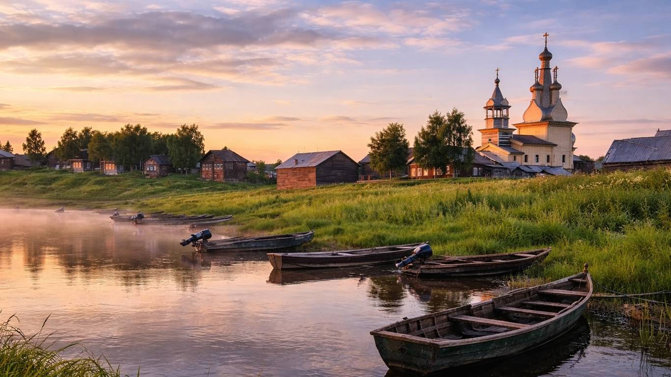 Архангельская область продолжает открываться путешественникам с неожиданной стороны. Пока одни выбирают популярные маршруты по Русскому Северу, другие уезжают туда, где нет витринной «туристической» красоты — зато есть тишина, редкие дома на фоне большой реки и ощущение, что современность здесь не главная.