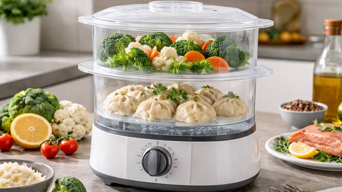 На рынке бытовой техники растёт интерес к простым устройствам для здорового питания. В центре внимания — электрические пароварки, которые позволяют готовить без масла, лишнего жира и сложных манипуляций. Одной из таких моделей стала двухуровневая пароварка-мантоварка мощностью 500 Вт с механическим управлением, таймером на 60 минут и системой автоотключения при отсутствии воды.