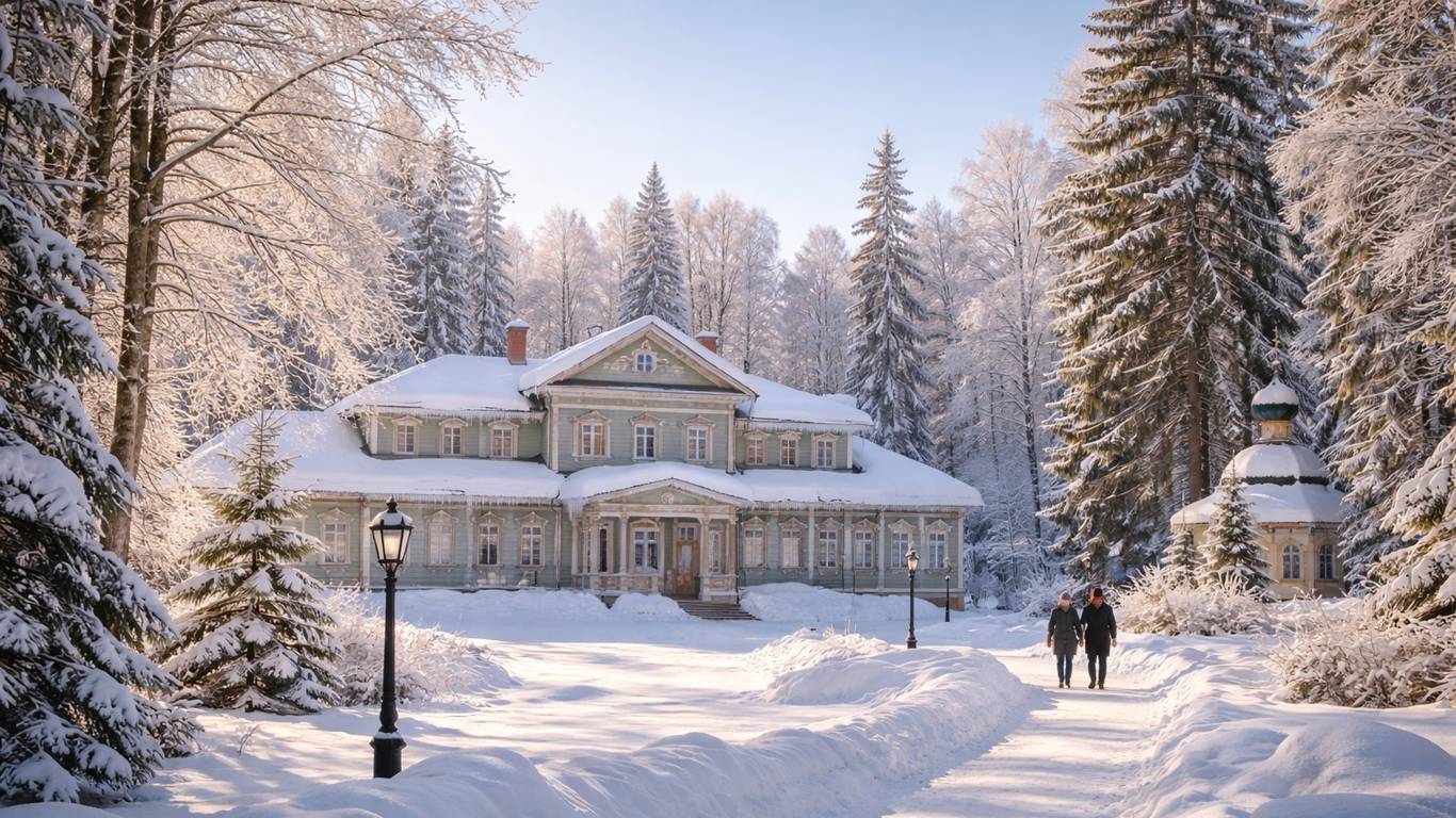 В морозный день эта дорога воспринимается как «переход» из городской суеты в другой темп. Идёшь, дышишь холодным воздухом, смотришь на ели в снегу — и кажется, что ты уже приехал, хотя до усадьбы ещё несколько минут.
