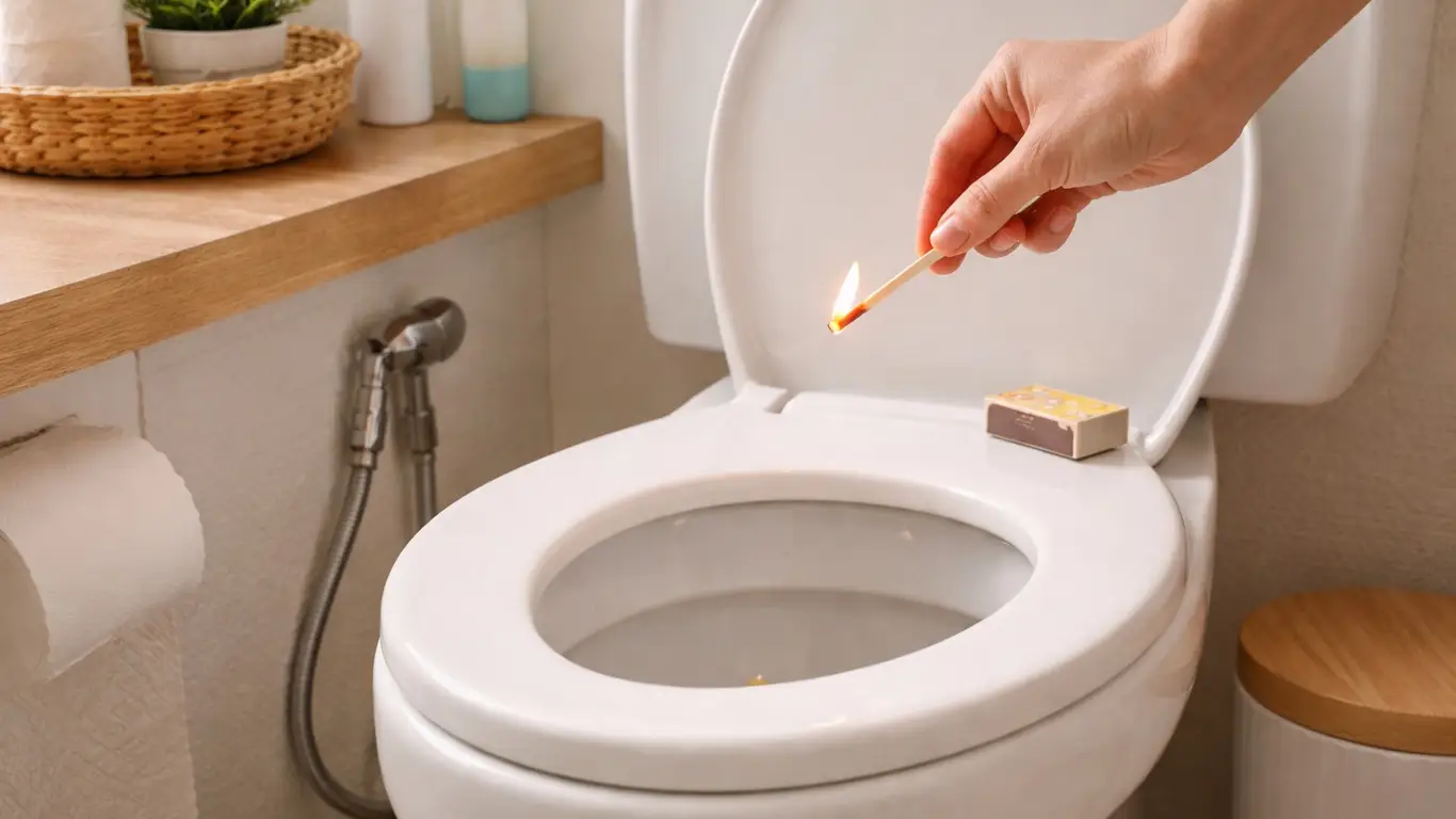 Секрет прост — обычная спичка. После использования туалета достаточно зажечь одну спичку и дать ей полностью прогореть. Запах исчезает буквально за несколько секунд. Важно соблюдать элементарные меры безопасности: