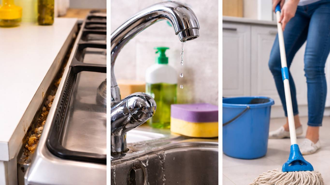 Щели у плиты, дешёвый смеситель и неудобная уборка — распространённые ошибки на кухне