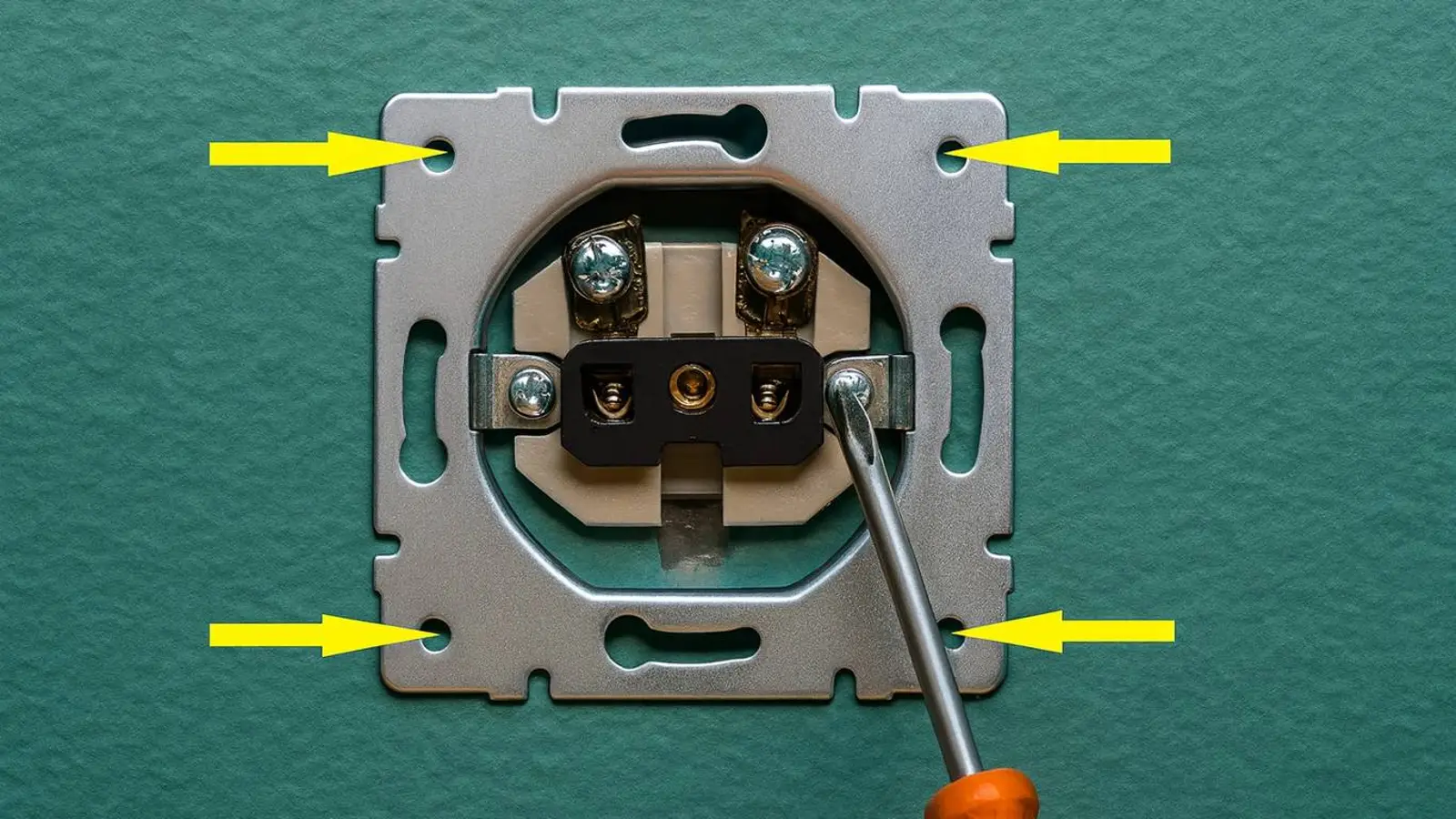 - Parafuse a tomada e sua moldura diretamente na parede.