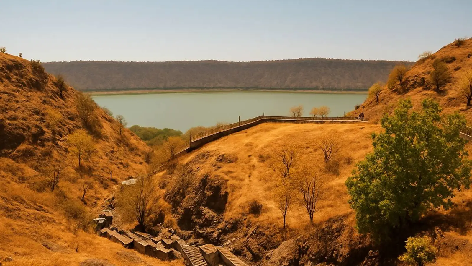 Descoperă lacul Lonar din Maharashtra, India: crater meteoritic rar în rocă bazaltică, apă salină-alcalină, ecosisteme și temple străvechi, pline de legende.